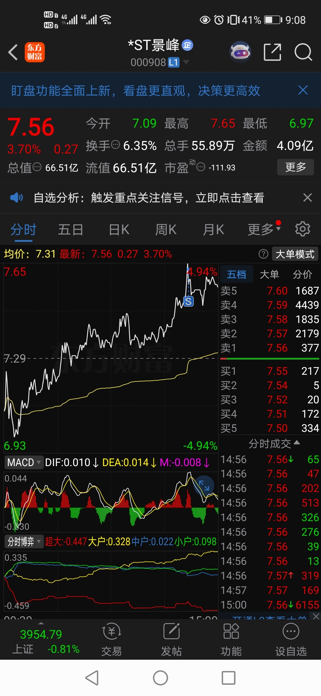 $*ST景峰(SZ000908)$ 早上差点吓跑了,满仓大肉