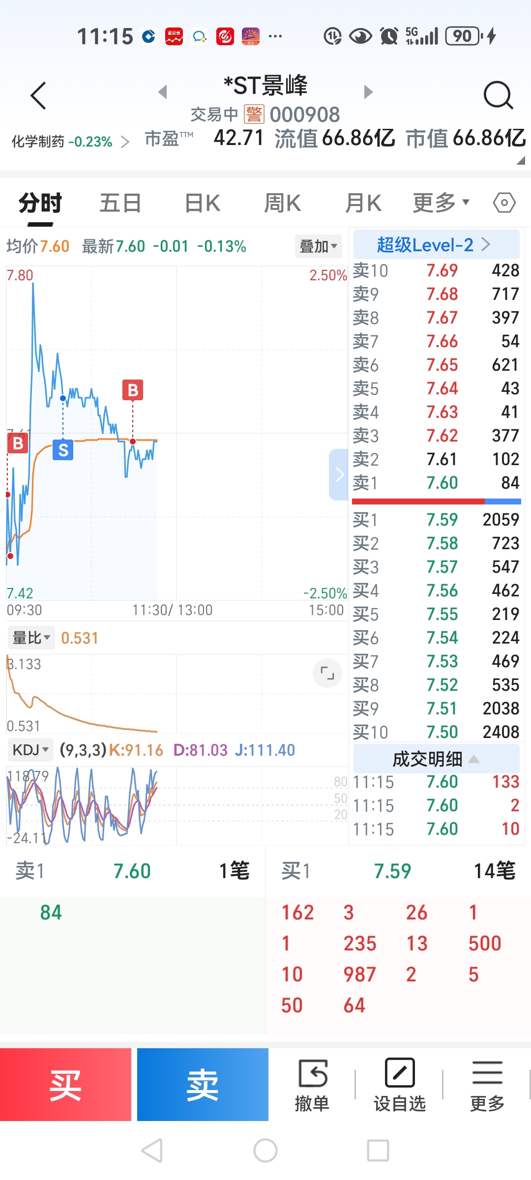 $*ST景峰(SZ000908)$ 这一个星期没行情,散户真要学主力会做T,有时一天可以做三次