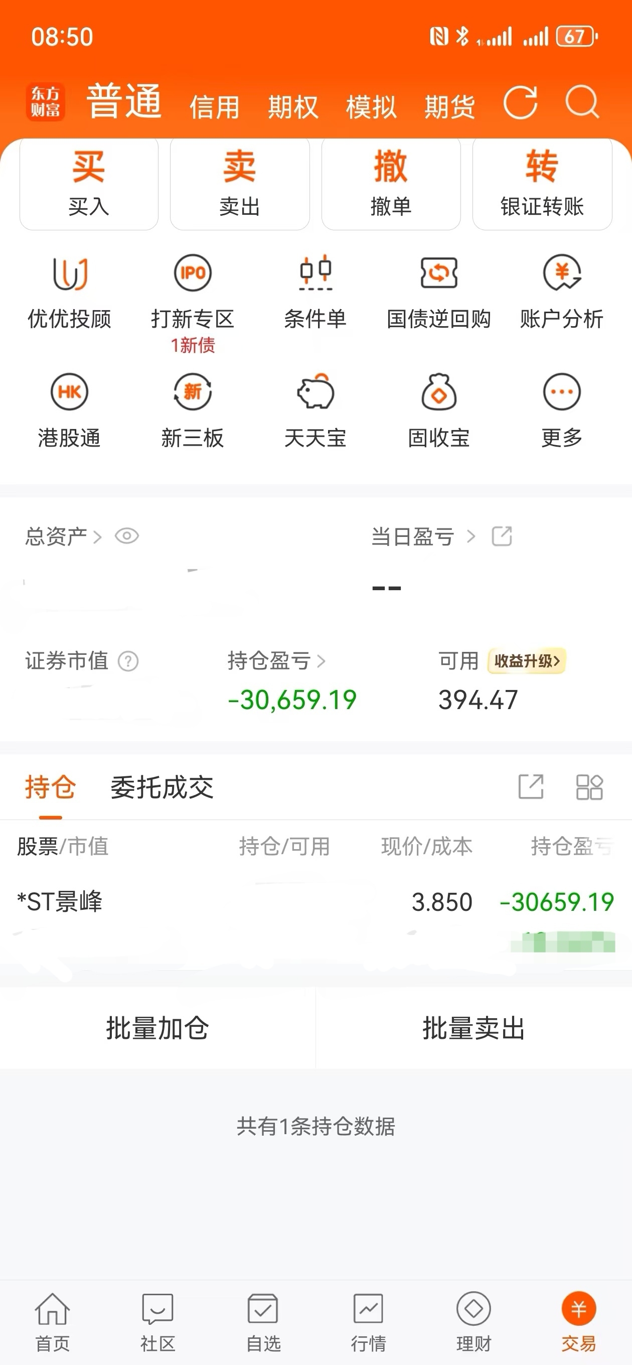 $*ST景峰(SZ000908)$ 新人没经历过景峰大起大落,一天天B这B那,去年6.36那天打板进来的一进来就挨了几个跌停我哭了吗,好不容易T到四块多,贸易战三天跌到3.85那天我都扛过来了,只要不退市我管你怎么玩,做好这只股就好