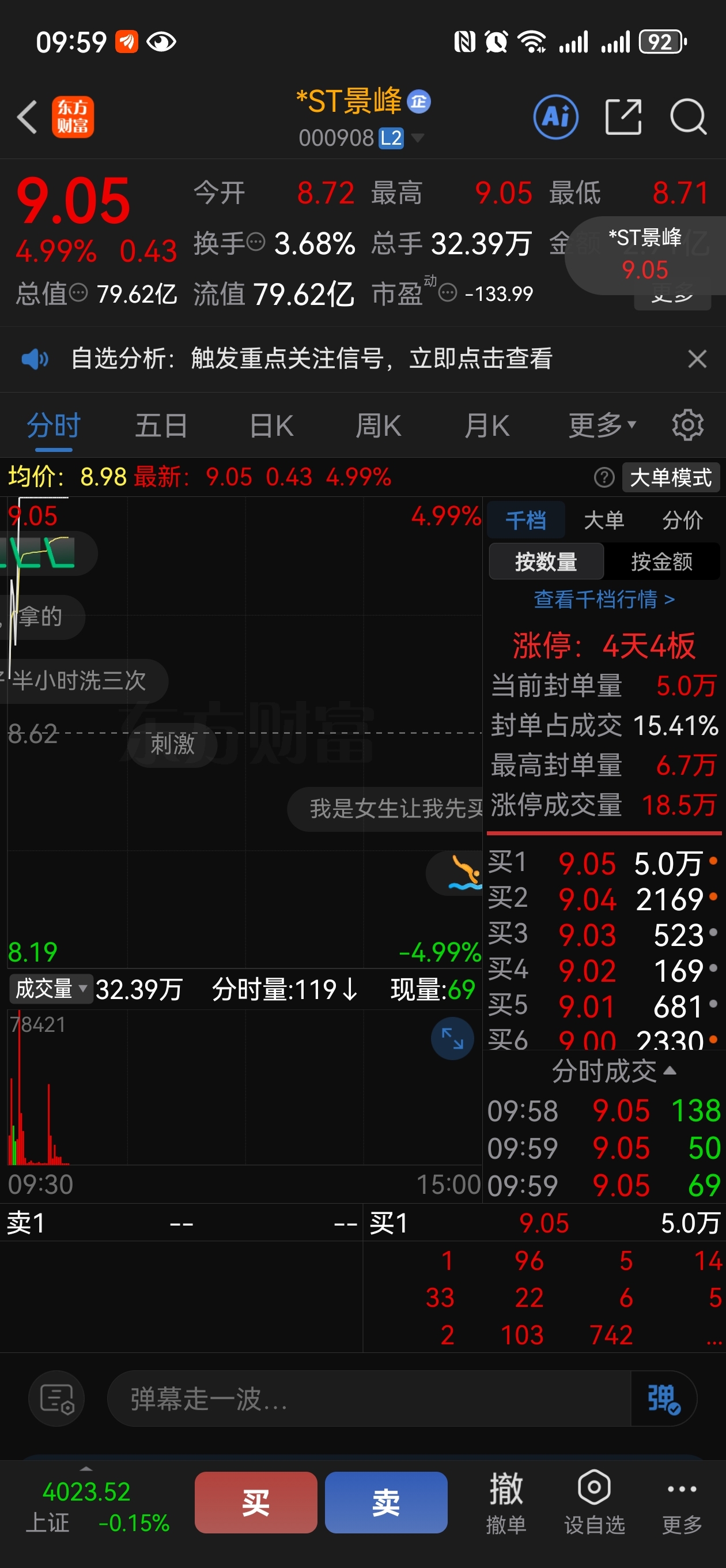 $*ST景峰(SZ000908)$ 一动不动,随你表演,躺平就好