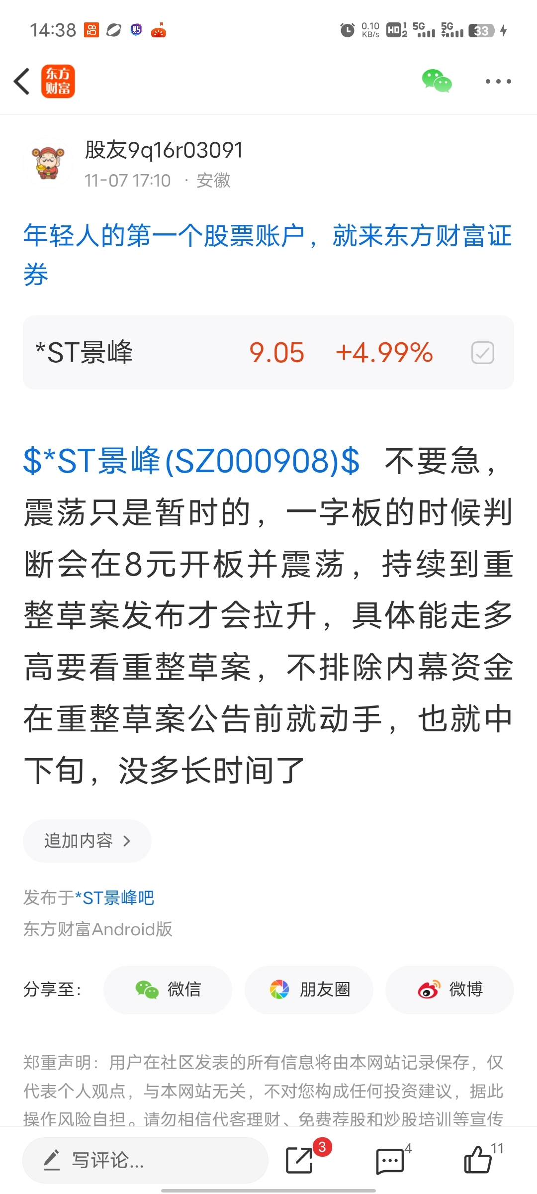 温馨提示: 1.根据《证券法》规定,禁止编造、传播虚假信息或者误导性信息,扰乱证券市场;2.用户在本社区发表的所有资料、言论等仅代表个人观点,与本网站立场无关,不对您构成任何投资建议。用户应基于自己的独立判断,自行决定证券投资并承担相应风险。《东方财富社区管理规定》