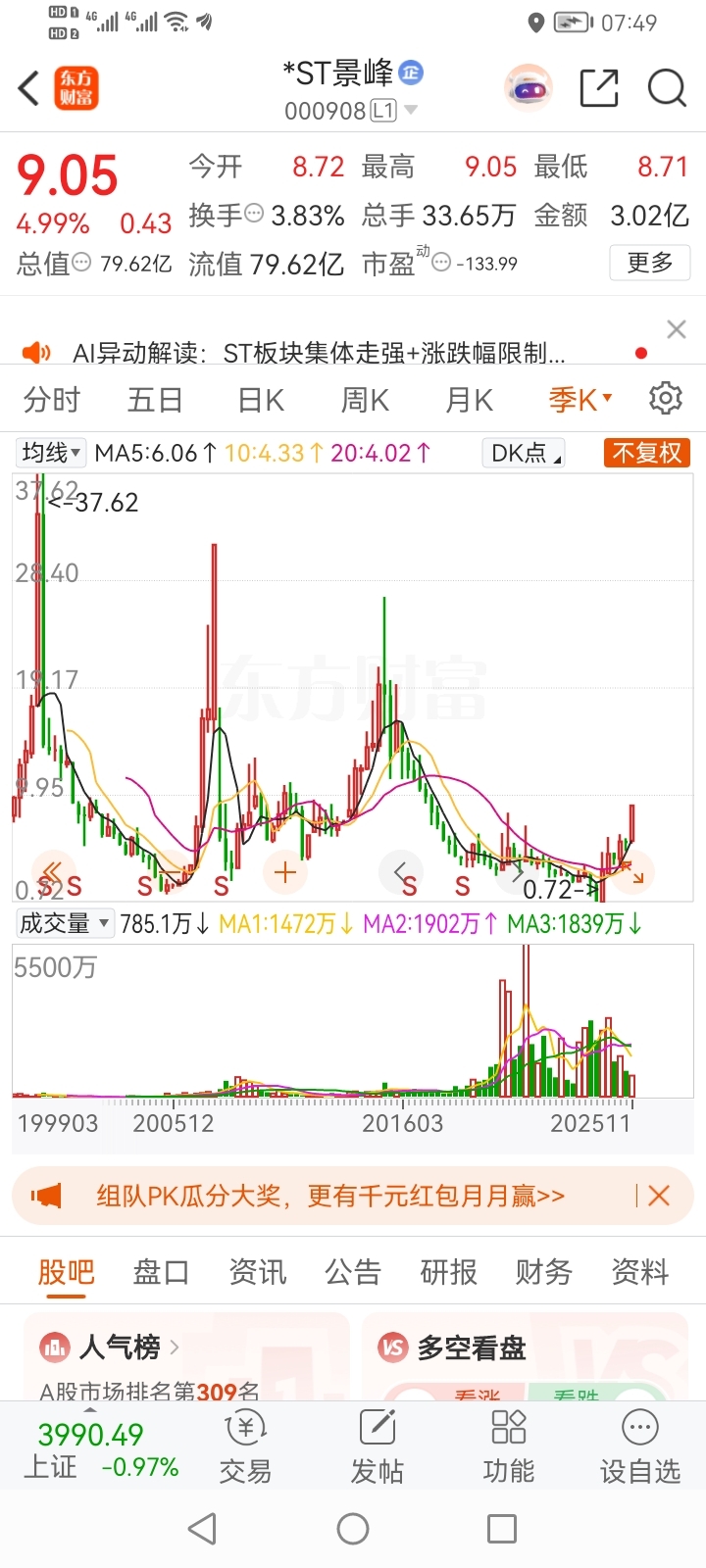 $*ST景峰(SZ000908)$ 2025年还有最后33个交易日,请根据下图说出你这一两年所经历过的心酸苦闷和开心快乐,以及对景峰未来的遐想!景峰没有辜负任何一个相信和坚持的家人,感恩、感谢