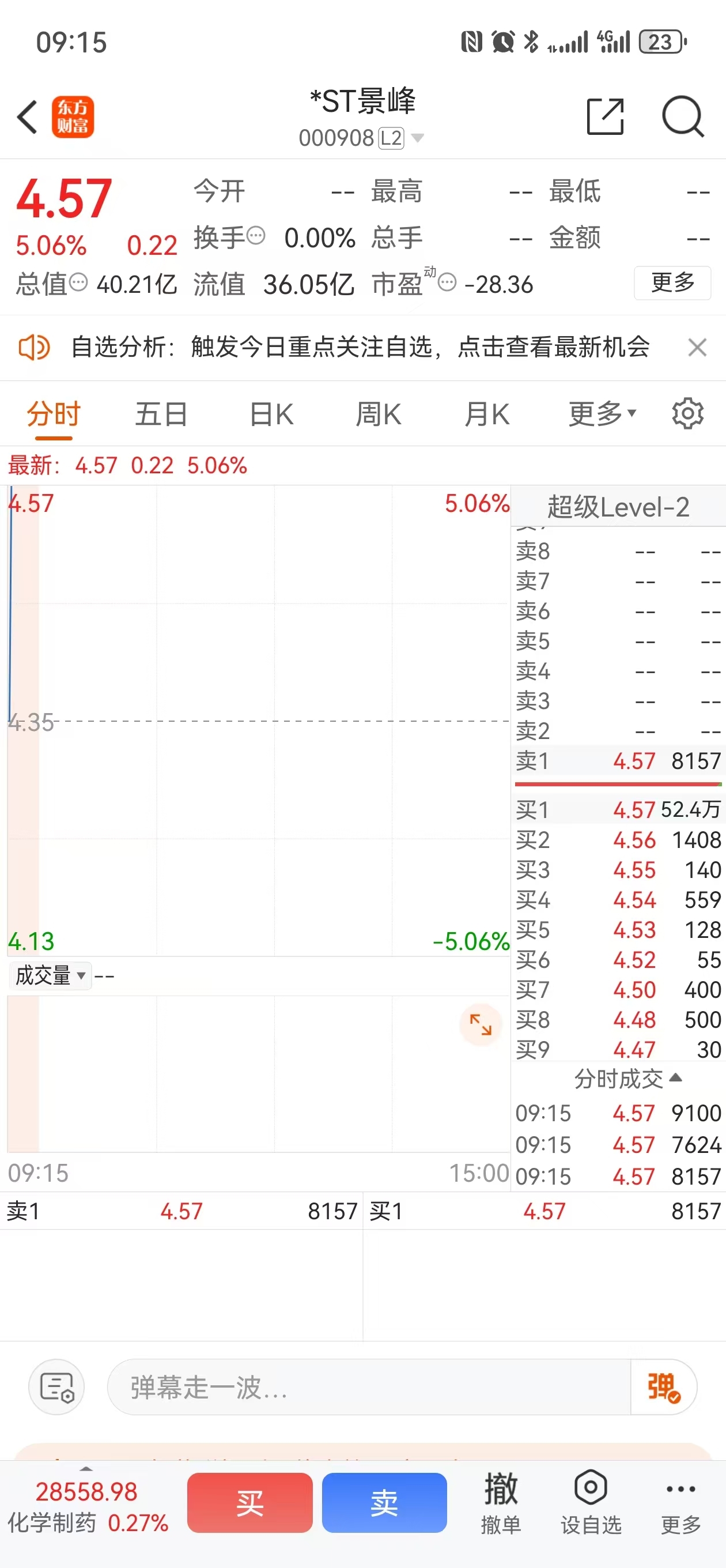 $*ST景峰(SZ000908)$ 什么时候才能重现五十万封单