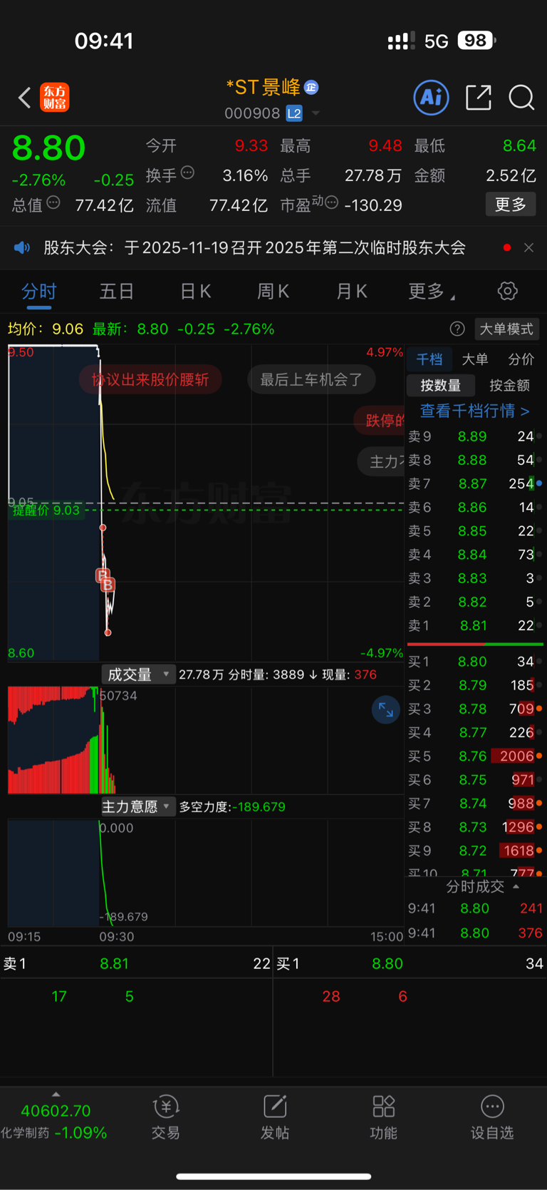 $*ST景峰(SZ000908)$ 你们卖吧,我加点