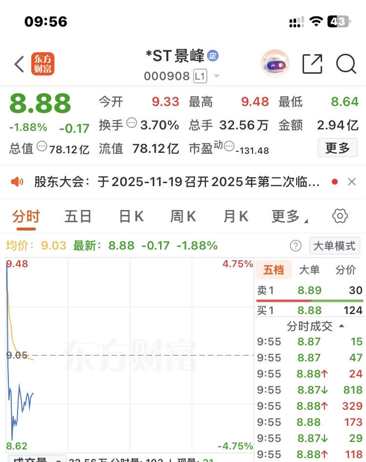 $*ST景峰(SZ000908)$ 8.88,1.88,主力告诉大家只要信我,买入你就等着发发发吧。