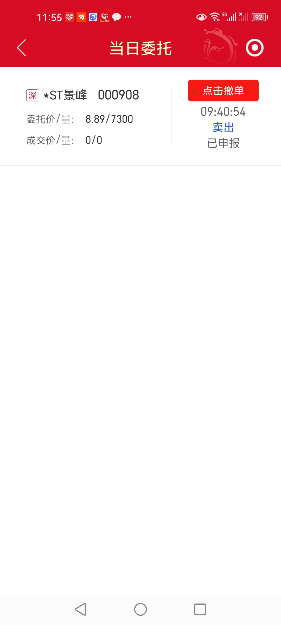 $*ST景峰(SZ000908)$ 上午出门办事挂了个卖单,错一分没成交。那就撤单了下午有时间看盘了。