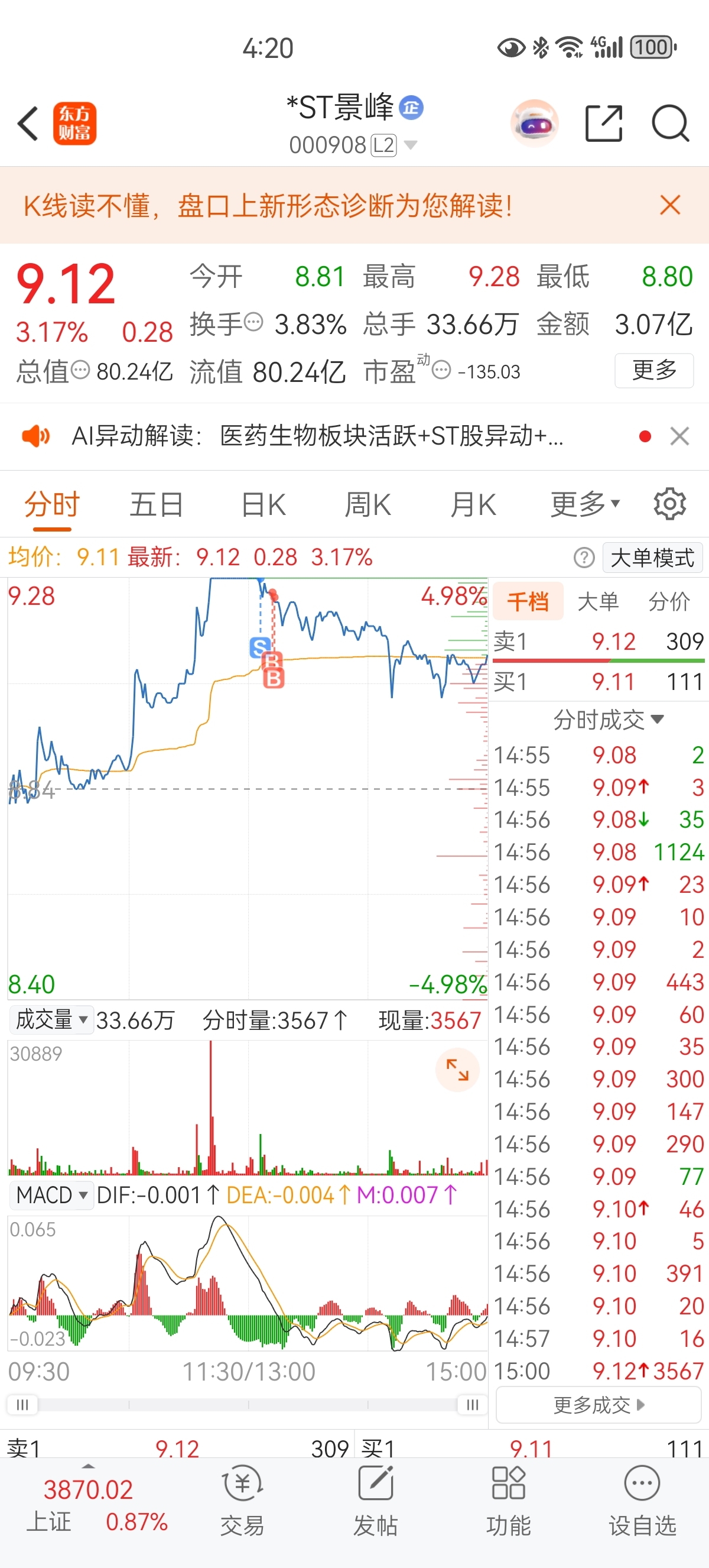 $*ST景峰(SZ000908)$ 不会T,好怕丢筹码了,卖了200手,低了2-3分全买回来了。怕啊,怕把筹码T少了