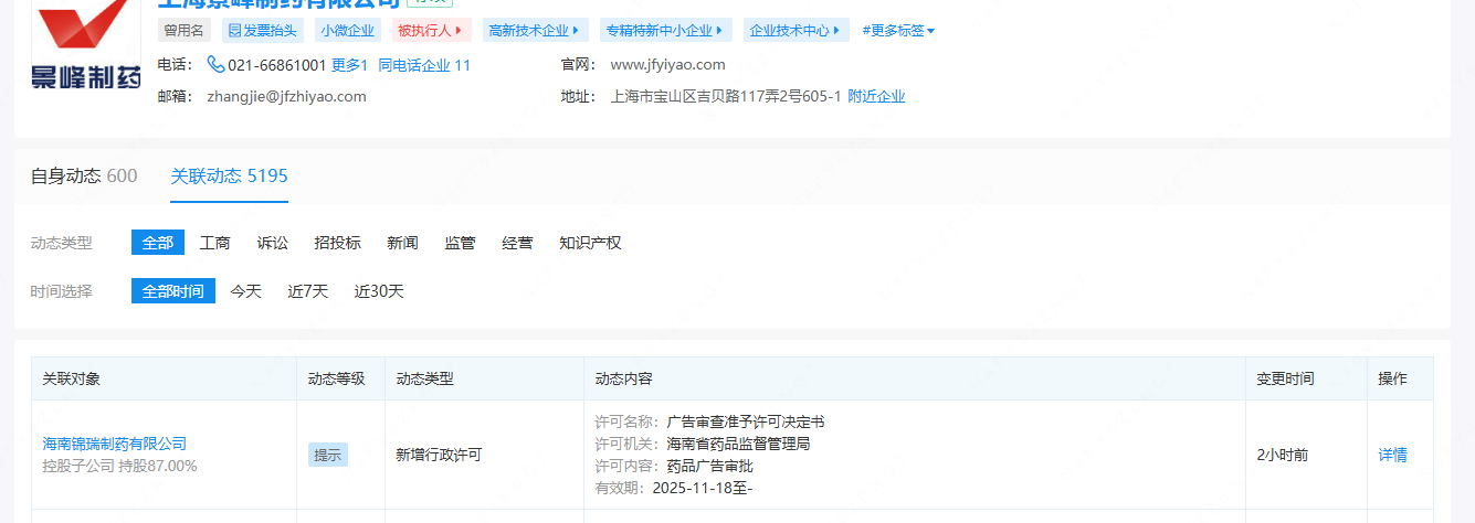 $*ST景峰(SZ000908)$ 海南子公司新出来的行政许可