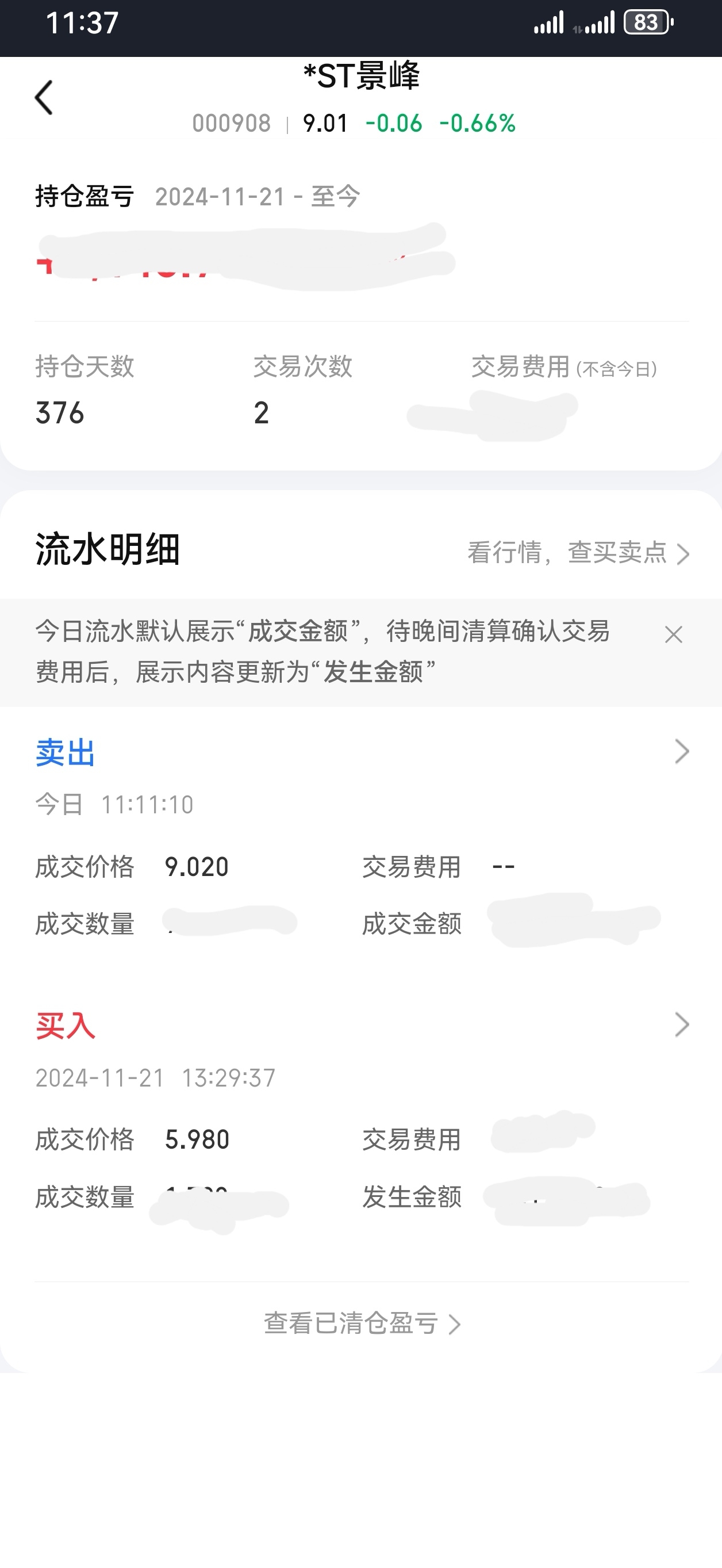 $*ST景峰(SZ000908)$ 兄弟们留下的发财,我先走一步了。