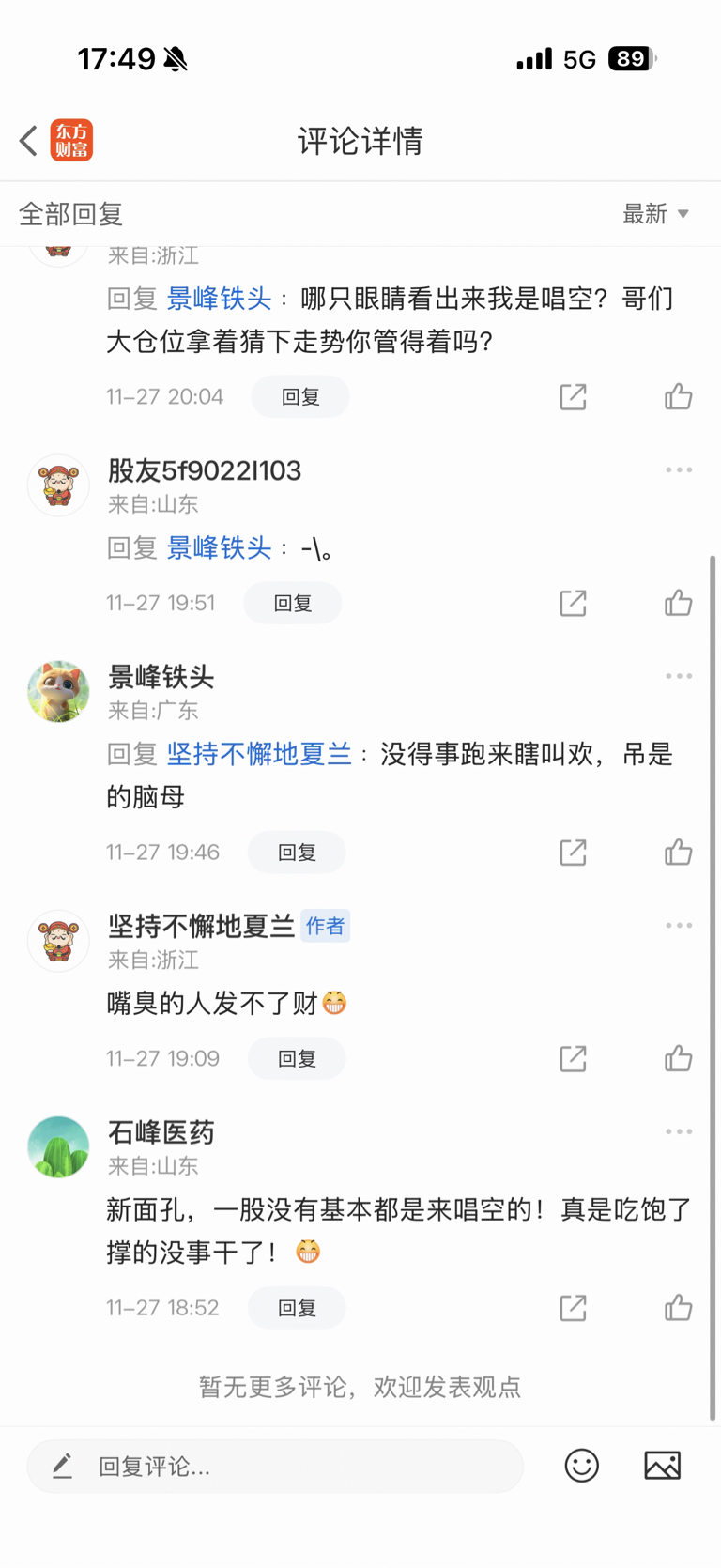 这样的素质,还得洗,本身我就有仓位没看空,只是说要调整一下,几个人居然还骂起来了
