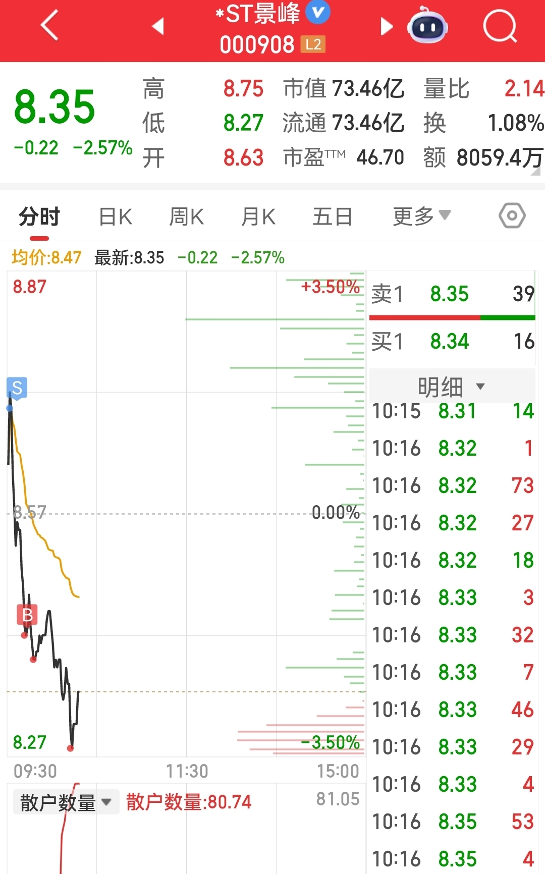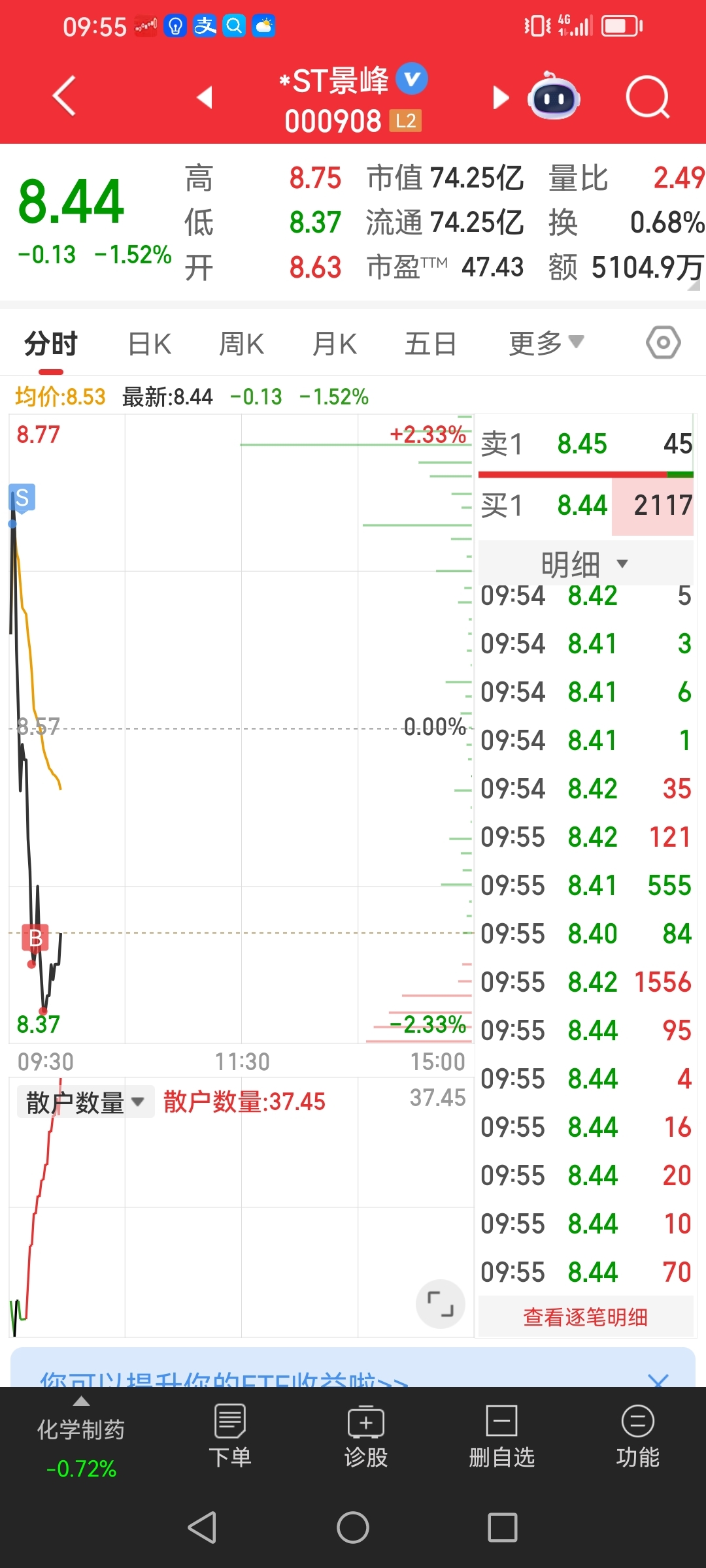 $*ST景峰(SZ000908)$ 主力坏得很,只能自渡