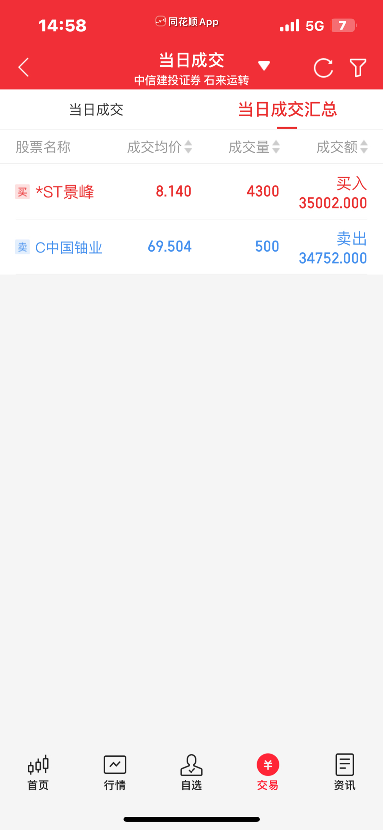 $*ST景峰(SZ000908)$ 增持公告:今天卖出中签中国铀业(001280)的500股,所获资金全部用于增持景峰医药共4300股。特此声明
