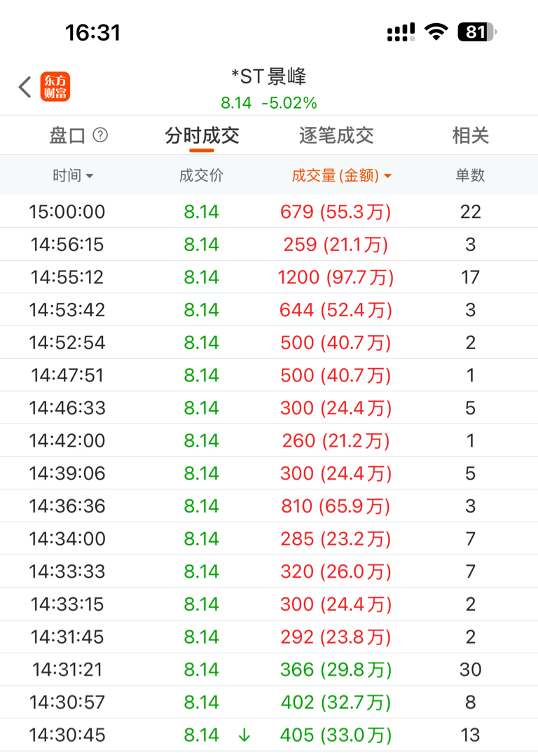 $*ST景峰(SZ000908)$ #强势机会# 半小时内买入也不少,明天到底会咋样,大神们