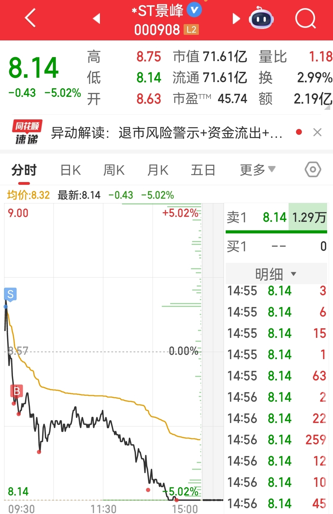 $*ST景峰(SZ000908)$ 还好今天做了下T,要不然亏惨了,唉,想吃口肉,只能靠熬了,算了下时间也就剩19个交易日了,随主力揉搓了,反正资式摆好了,每一个跌停板小加800股。