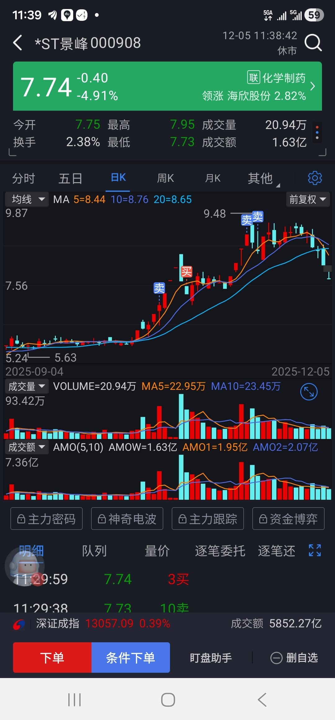 $*ST景峰(SZ000908)$ 这波低点我看在7.00元