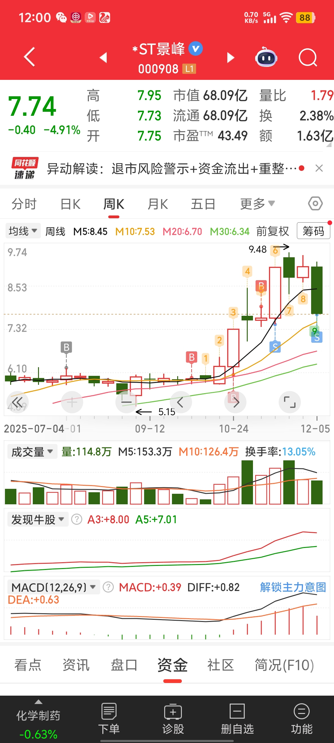 $*ST景峰(SZ000908)$ 留的底仓还是多了点,继续减持,开春再战,希望大叔回来的时候不是像今年初4元价格保卫战,而是冲击15.20的冲锋战