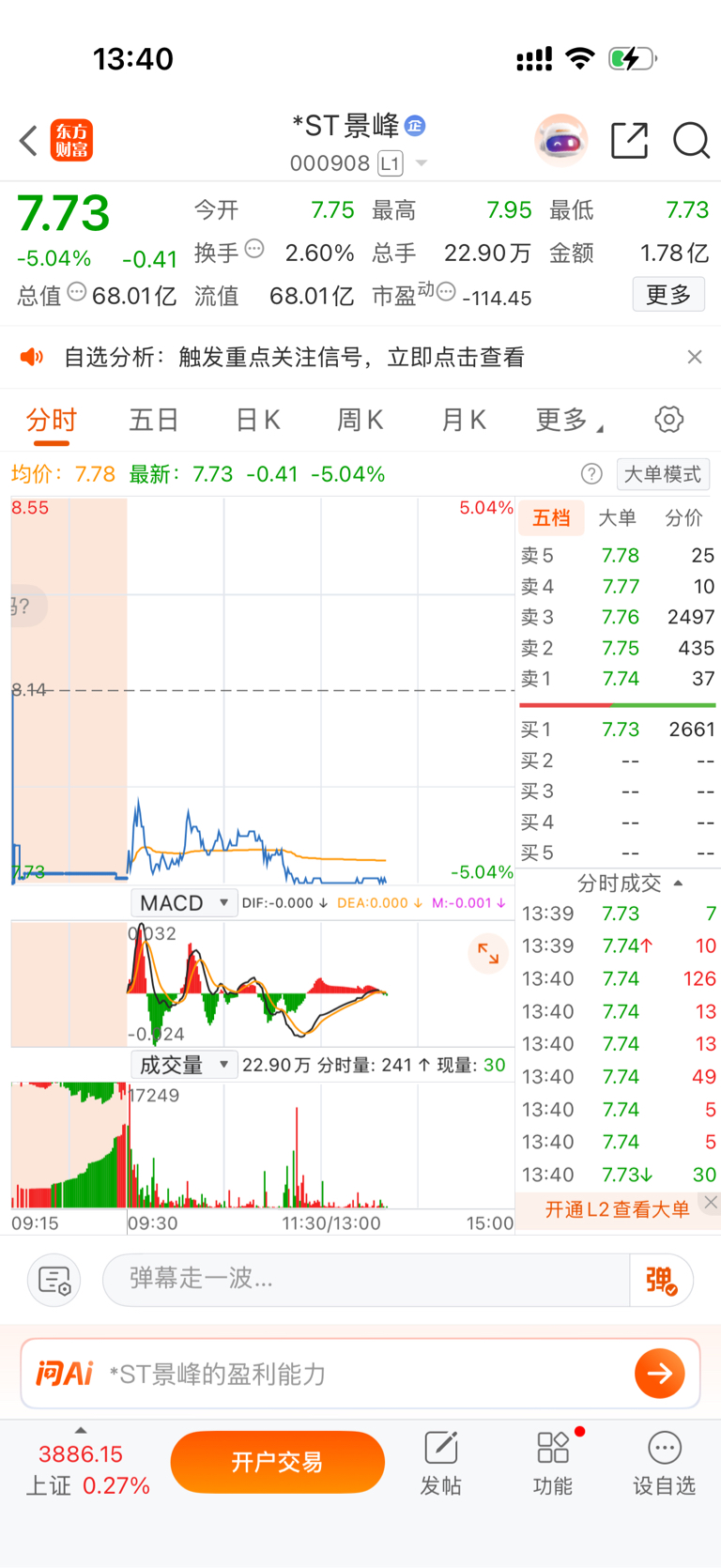 $*ST景峰(SZ000908)$ 撤单是不控盘了吗
