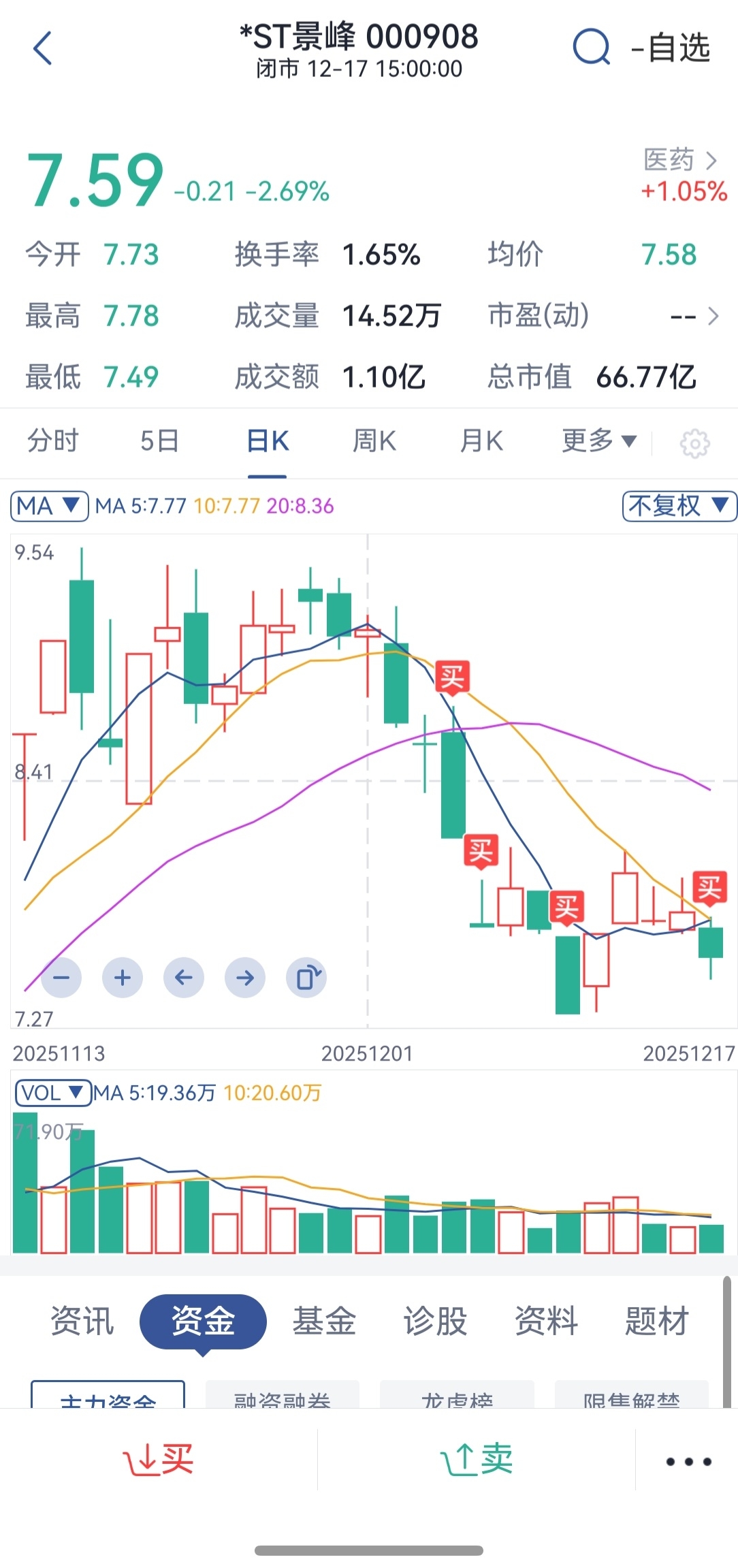 $*ST景峰(SZ000908)$ 真铁头闭关前最后一贴,习惯一次又一次的坐过山车,但每次高点从来没有S,你可以说我傻,我就这样,相信未来能吃上大肉的也会有我一份,明天开始正式潜水了,全仓投资石药银行不在乎短期波动,三年10倍不是梦,加油各位!