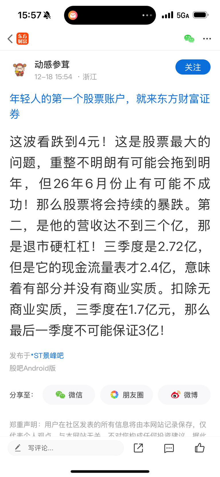 温馨提示: 1.根据《证券法》规定,禁止编造、传播虚假信息或者误导性信息,扰乱证券市场;2.用户在本社区发表的所有资料、言论等仅代表个人观点,与本网站立场无关,不对您构成任何投资建议。用户应基于自己的独立判断,自行决定证券投资并承担相应风险。《东方财富社区管理规定》