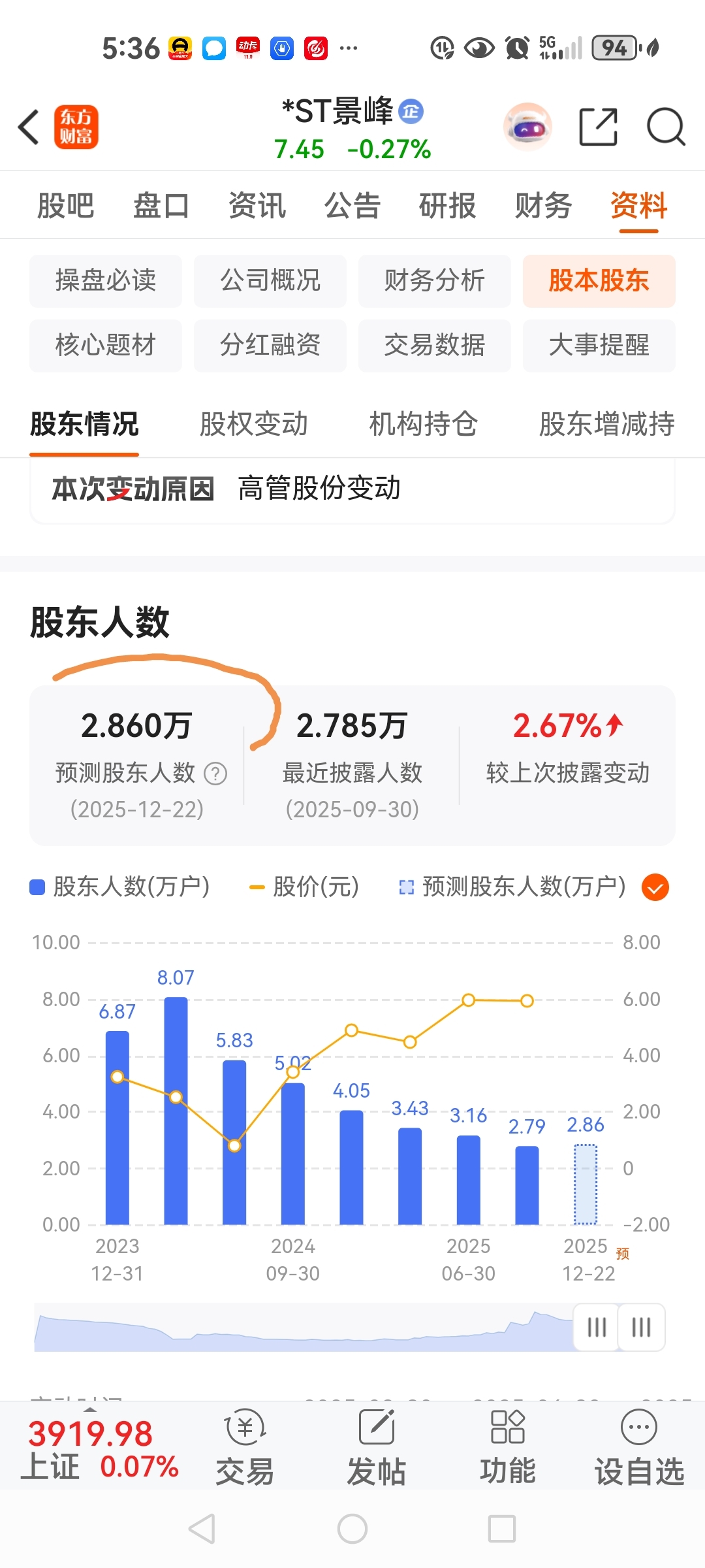 $*ST景峰(SZ000908)$ 股东人数2.86万