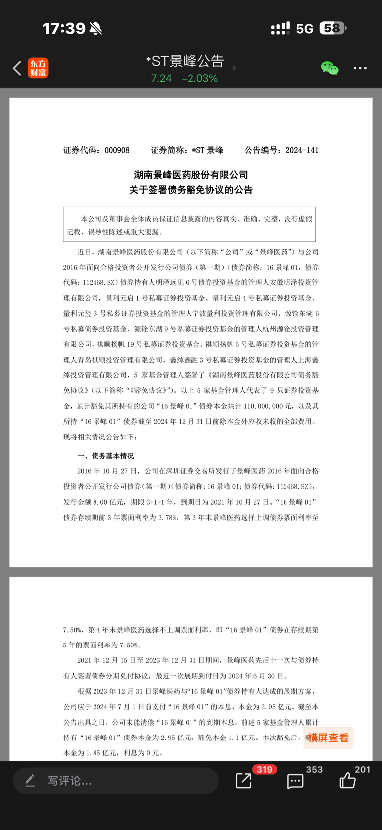 $*ST景峰(SZ000908)$ 不是去年就发了
