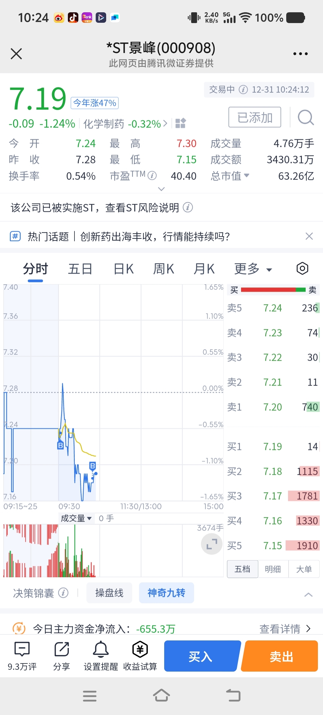 $*ST景峰(SZ000908)$ 同志门,我又进来了,欢迎吗?希望明天涨停