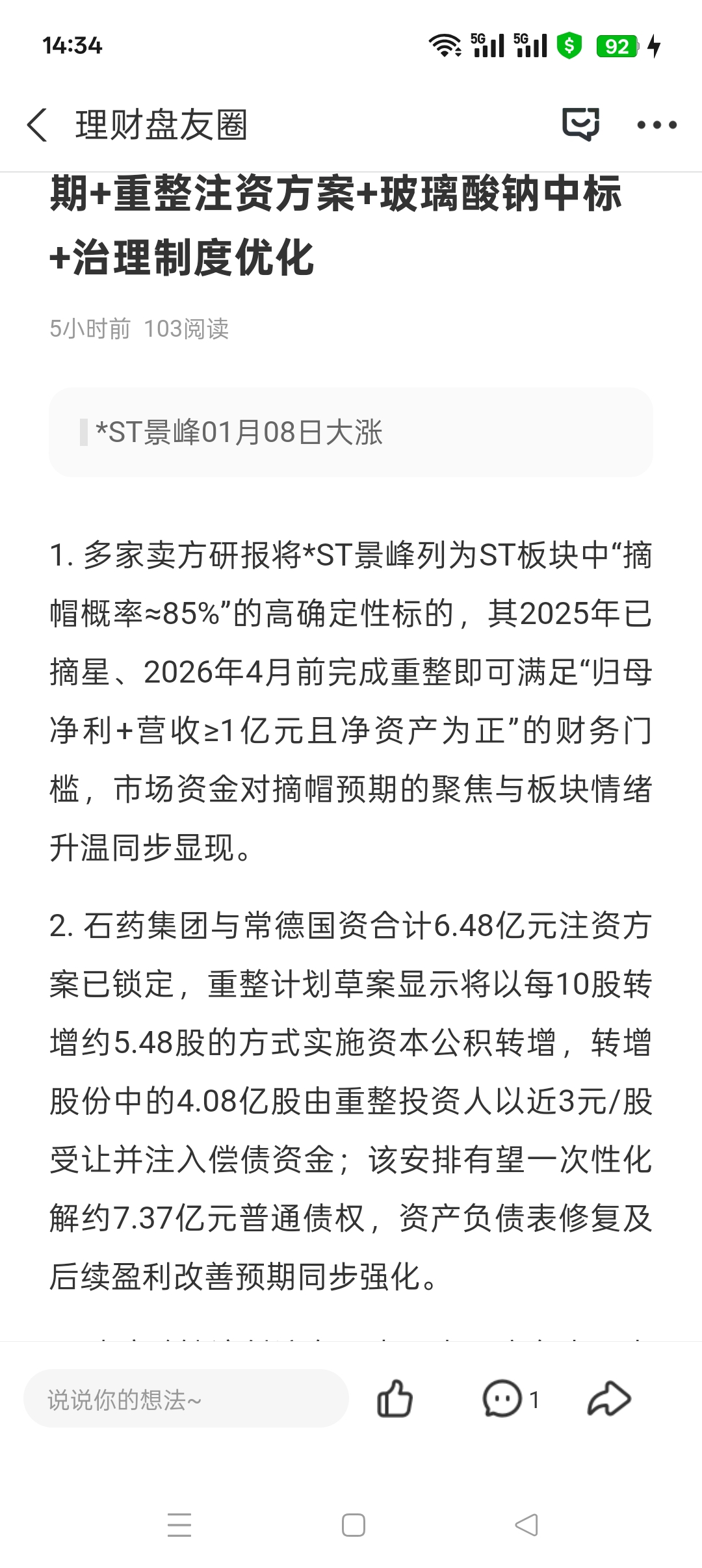 郑重声明:用户在财富号/股吧/博客等社区发表的所有信息(包括但不限于文字、视频、音频、数据及图表)仅代表个人观点,与本网站立场无关,不对您构成任何投资建议,据此操作风险自担。请勿相信代客理财、免费荐股和炒股培训等宣传内容,远离非法证券活动。请勿添加发言用户的手机号码、公众号、微博、微信及QQ等信息,谨防上当受骗!