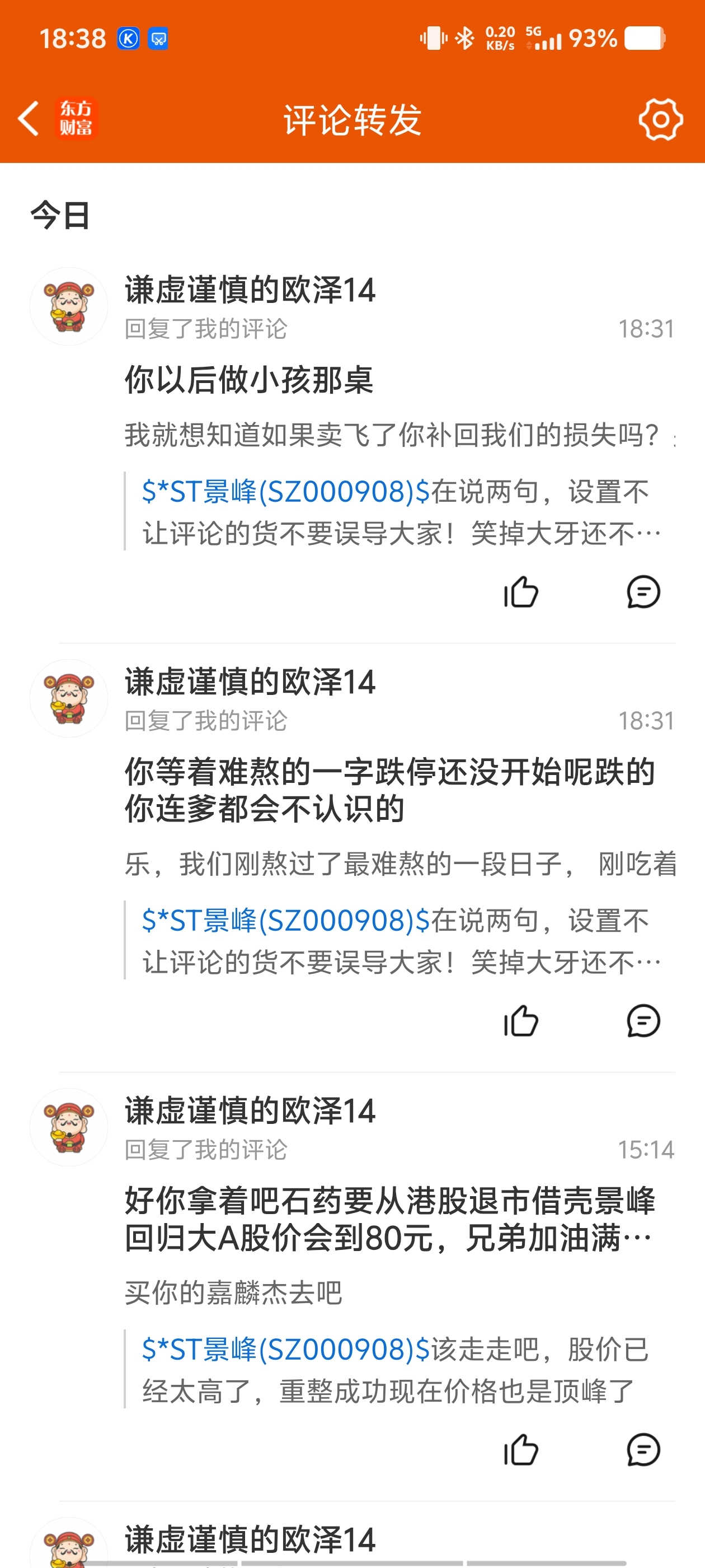 $*ST景峰(SZ000908)$ 刚涨一点就有人跑过来跳大神,真那么准还会在股吧跟人吹牛一B?