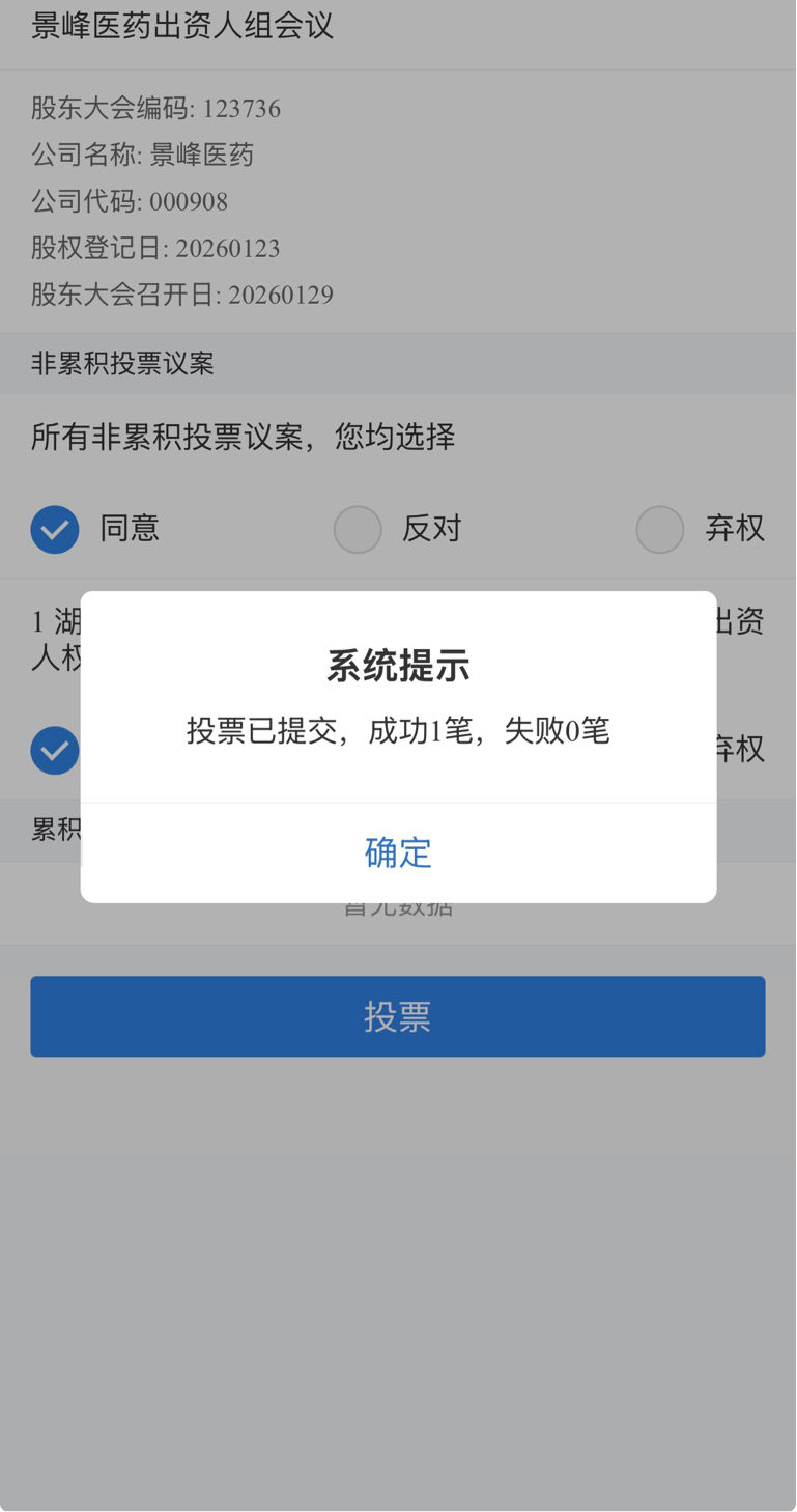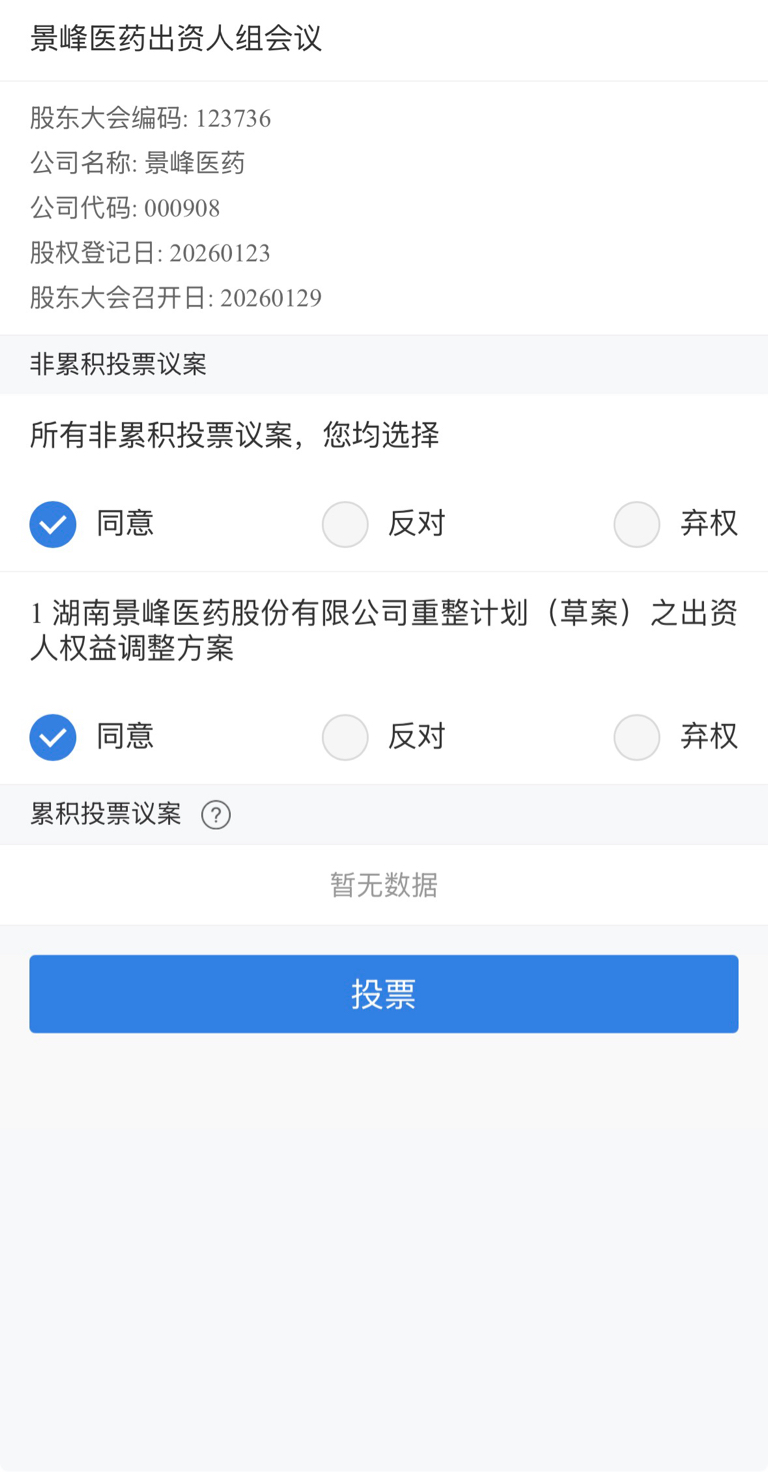 $*ST景峰(SZ000908)$ 我同意并支持。