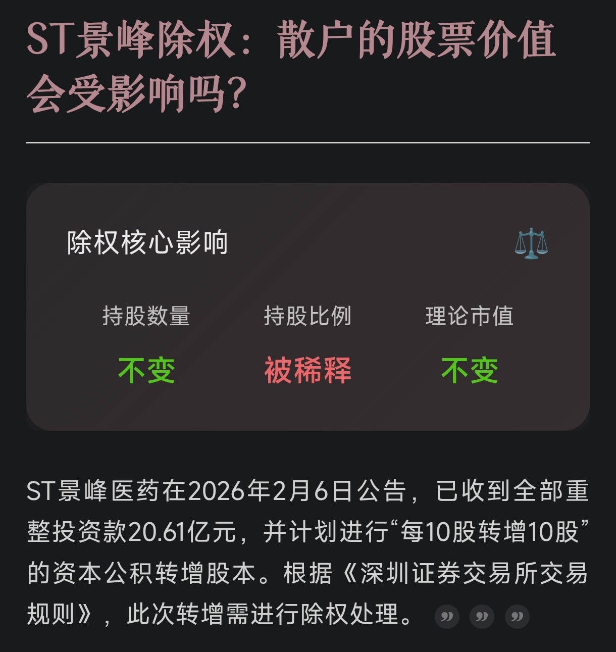 "除权只是数字游戏,公司的真实价值才是决定投资成败的关键。"——除权资深投资者