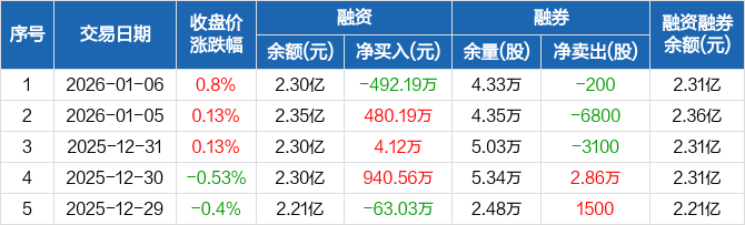 大亚圣象:融资净偿还492.19万元,融资余额2.3亿元(01-06)