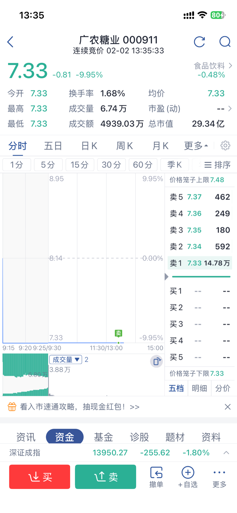 $广农糖业(SZ000911)$ 我先溜了,有缘再会!