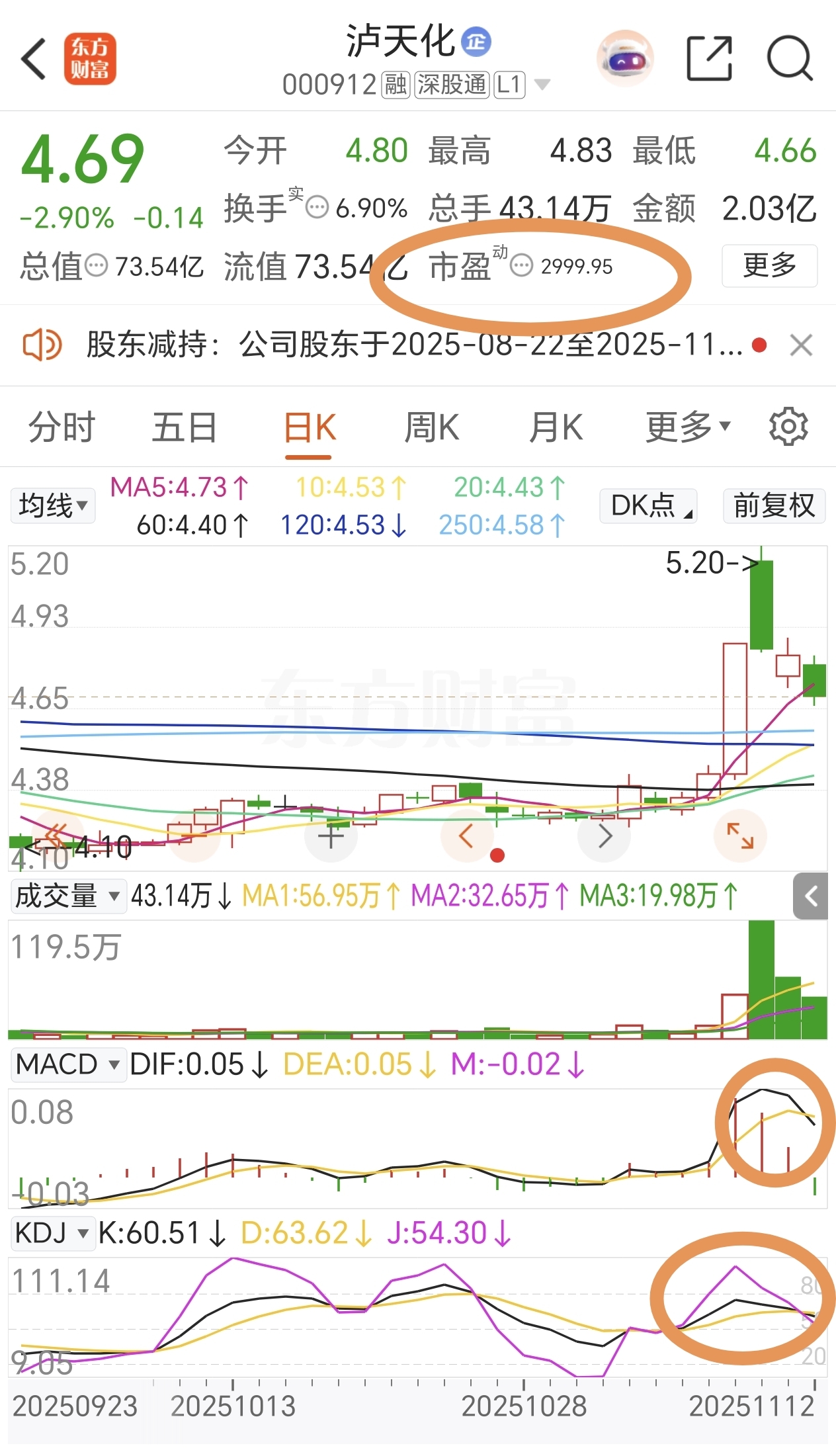 有没有哪个高手能解释一下这个票MACD死叉向下,KDJ也死叉向下,市盈率3000