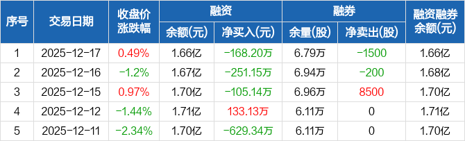 泸天化:连续3日融资净偿还累计524.5万元(12-17)