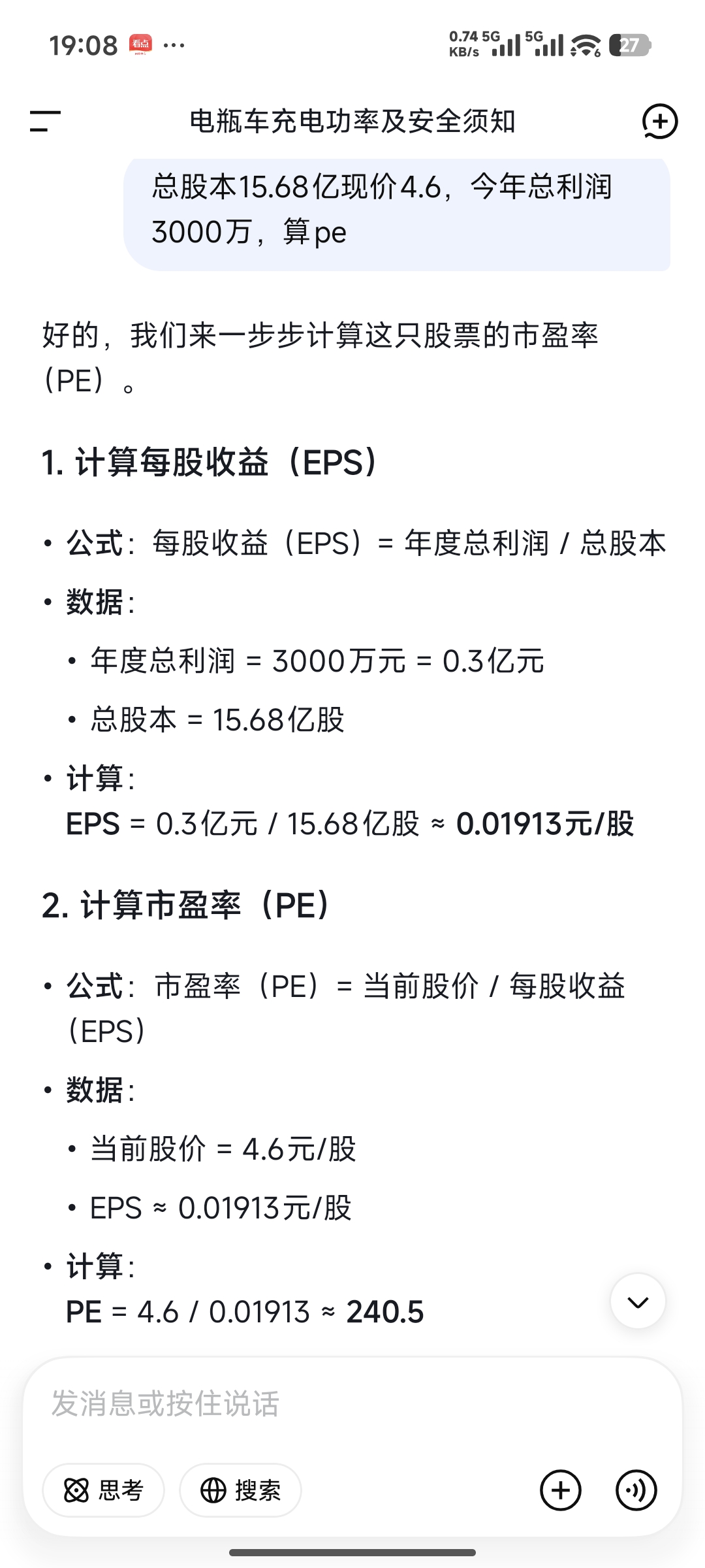 我随便问了下deepseek,按3000万利润算今年pe也有240,3季度动态pe是2940,这pe降了92%,虽然股票不能按Pe来炒,主要看周期和时间法则,但是有的人太文盲了