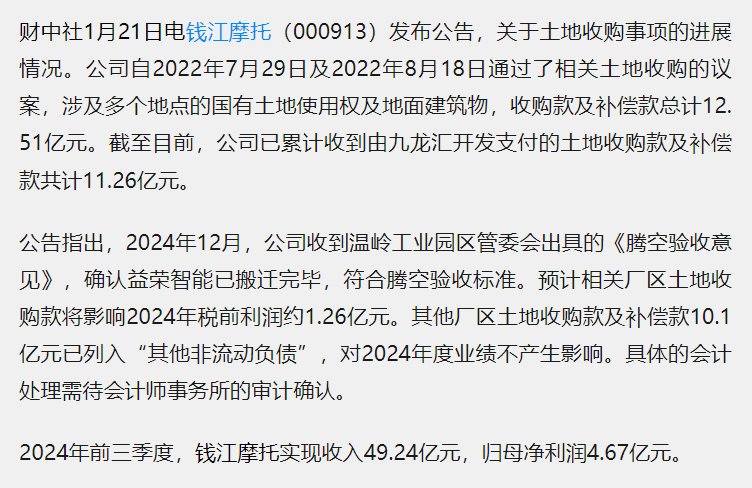 钱江工厂10月份完成搬迁,四季度应该有一笔补偿款会计入利润,按机构预测,今年大致会有接近10亿的净利润