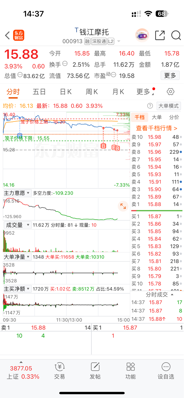 $钱江摩托(SZ000913)$ 很久没出重手了,看在你征地得了10多个亿,新厂也开始投入生产