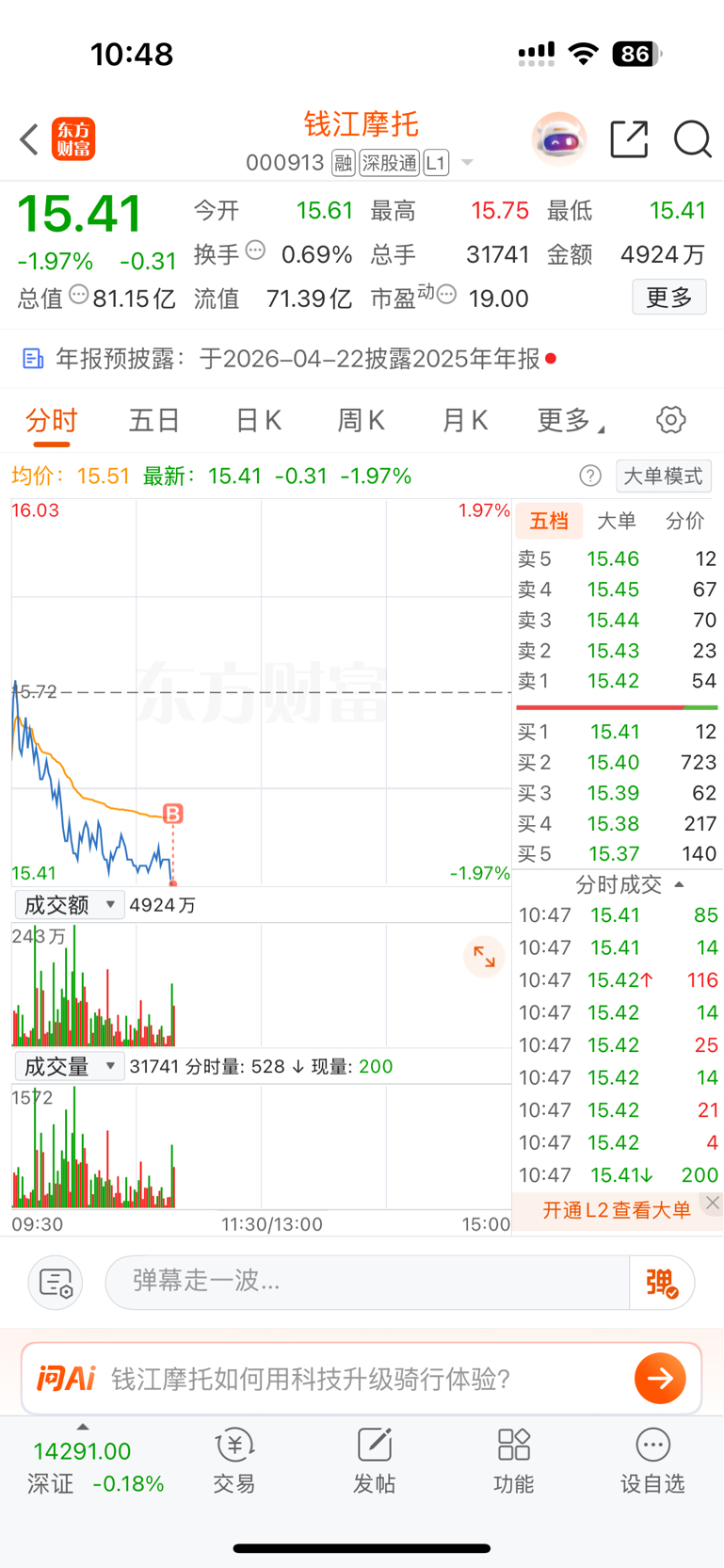 $钱江摩托(SZ000913)$ 上车了,小买一点,看看qj还有多少人在关注