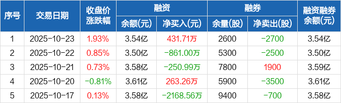 华特达因:融资净买入431.71万元,融资余额3.54亿元(10-23)