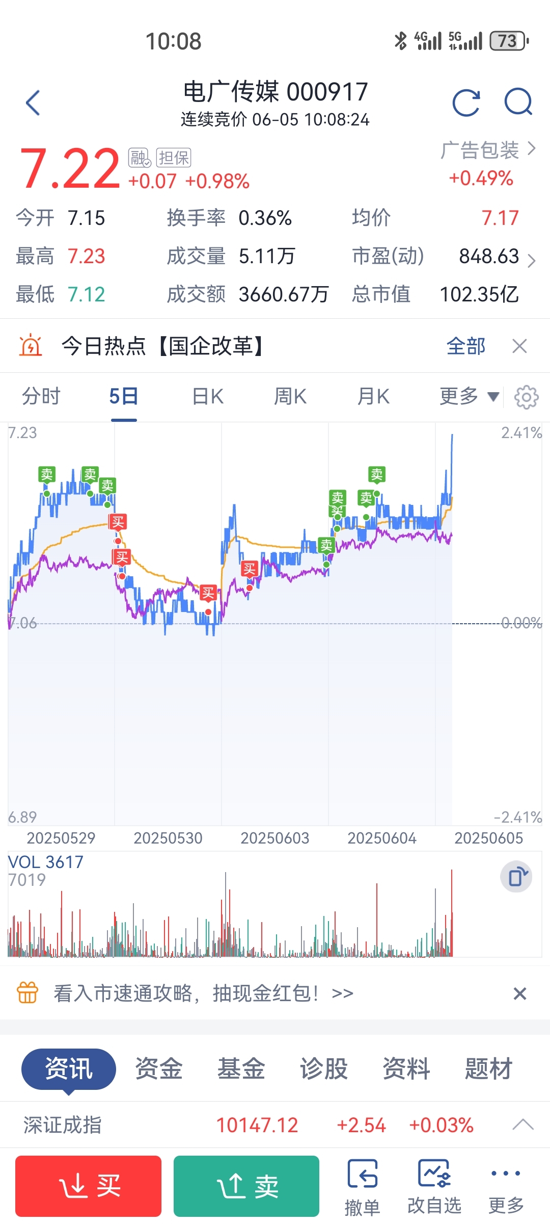 $电广传媒(SZ000917)$ 昨天清仓了,今天涨了,来来来,我看你要不要涨停