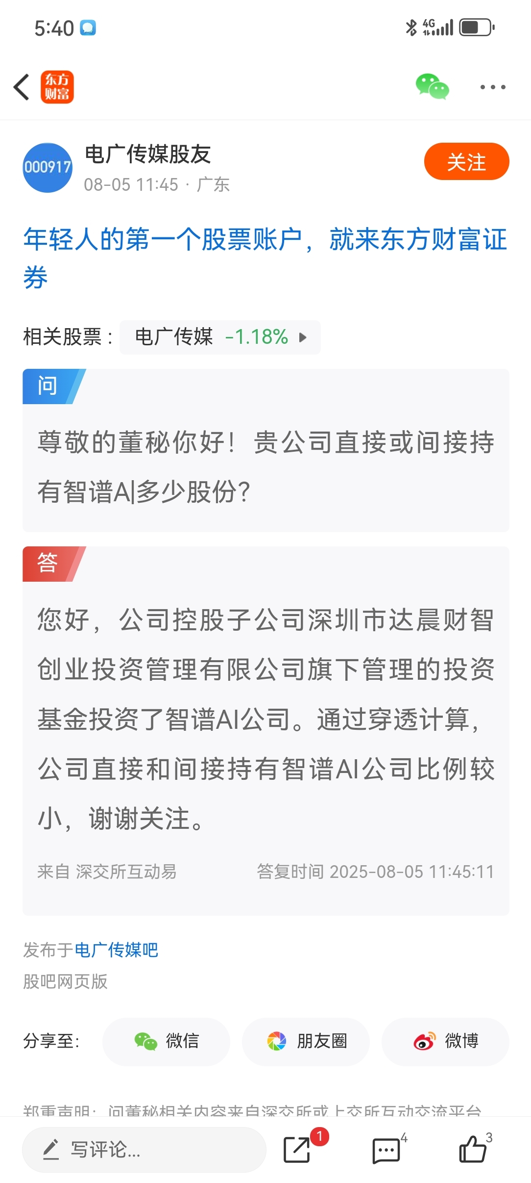 $电广传媒(SZ000917)$ 都不要争论了,这个是董秘的回答,个人感觉多少不重要,有就行,主要是一个情绪指标!