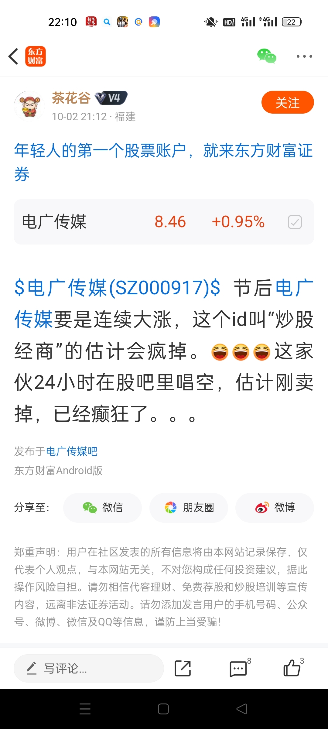 温馨提示: 1.根据《证券法》规定,禁止编造、传播虚假信息或者误导性信息,扰乱证券市场;2.用户在本社区发表的所有资料、言论等仅代表个人观点,与本网站立场无关,不对您构成任何投资建议。用户应基于自己的独立判断,自行决定证券投资并承担相应风险。《东方财富社区管理规定》