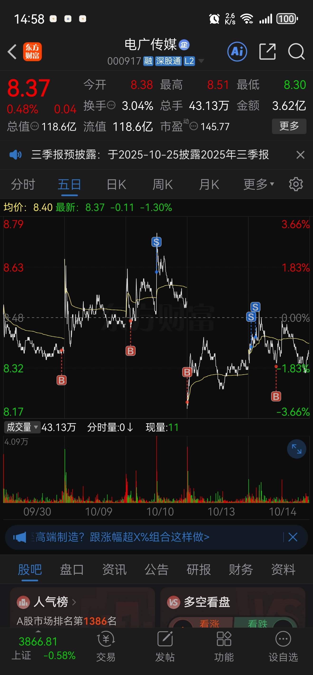 $电广传媒(SZ000917)$ 一时做T,一时爽,一直做T,一直爽苟Z,你继续压!