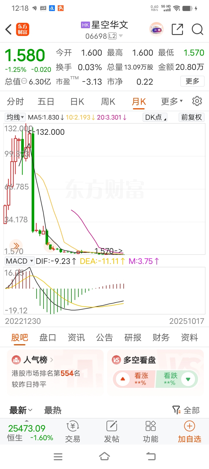 $电广传媒(SZ000917)$ 不做好人必有恶报,看看星空华文当年怎么跌的。