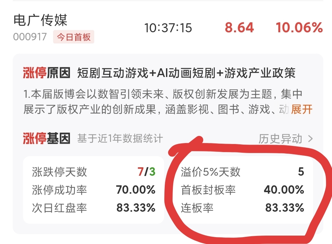 首板封板概率虽然不高,但连板概率是恐怖的80%,好好珍惜手中筹码吧