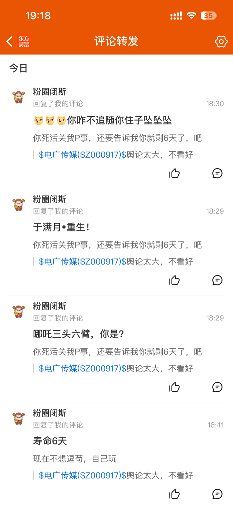 $电广传媒(SZ000917)$ 这是啥品种的苟,骂完人就拉黑,玩不起就别出来丢人