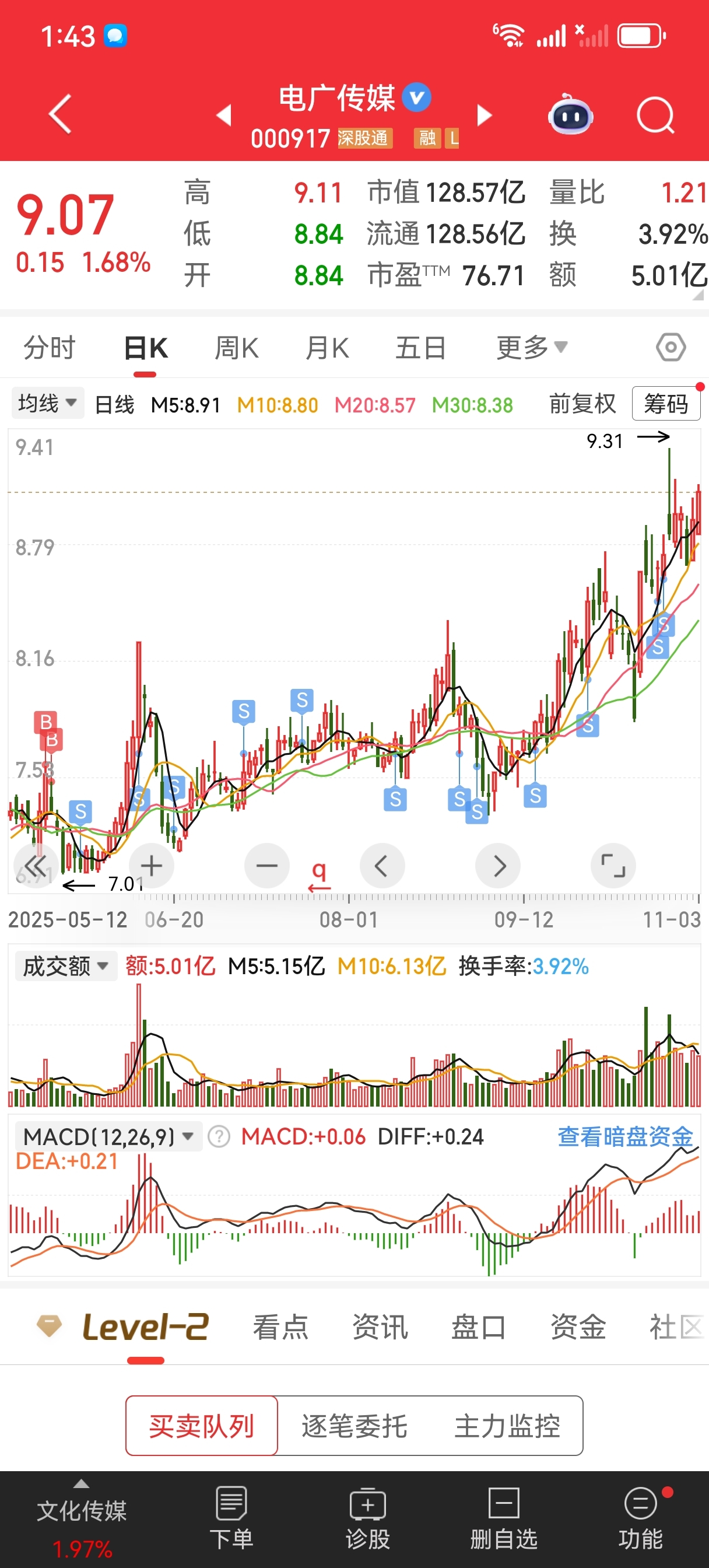 $电广传媒(SZ000917)$ 我全部卖完了,你可以涨了,但你别跌太多了哦,跌多了我又要买回来