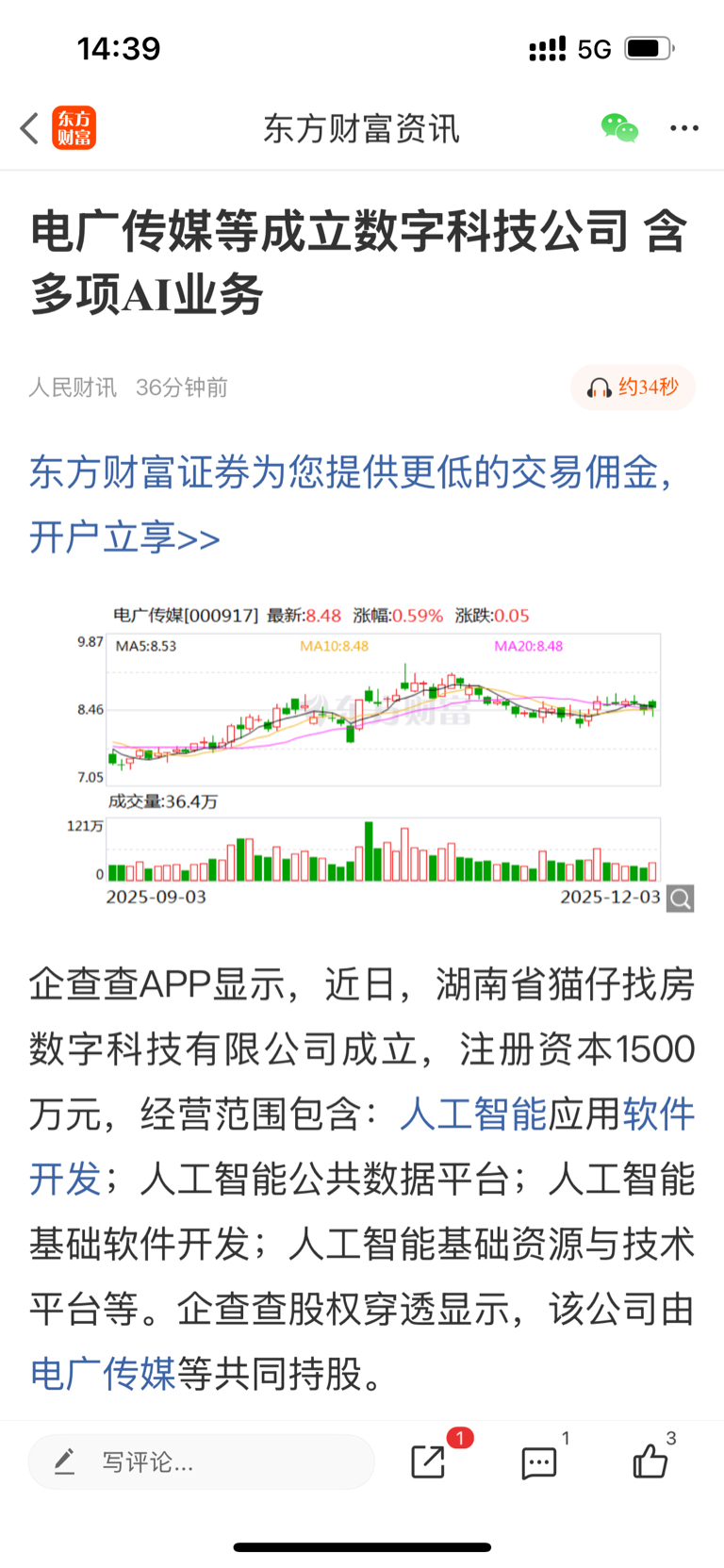 $电广传媒(SZ000917)$ 成立新Ai公司