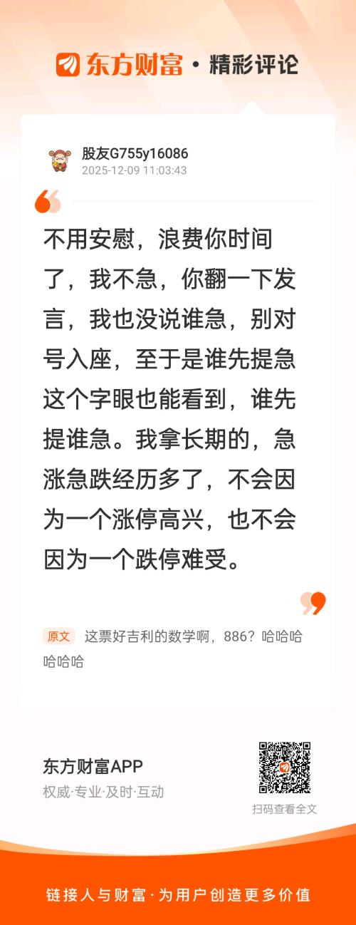 温馨提示: 1.根据《证券法》规定,禁止编造、传播虚假信息或者误导性信息,扰乱证券市场;2.用户在本社区发表的所有资料、言论等仅代表个人观点,与本网站立场无关,不对您构成任何投资建议。用户应基于自己的独立判断,自行决定证券投资并承担相应风险。《东方财富社区管理规定》