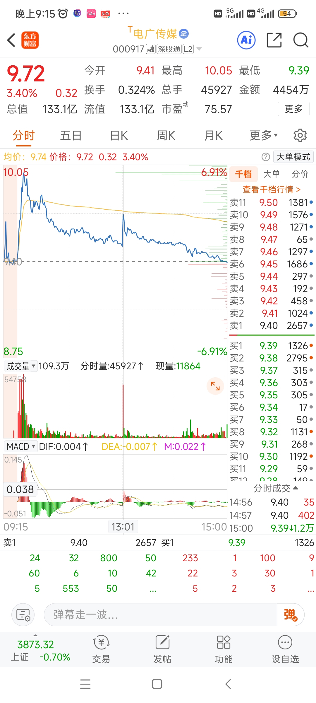 $电广传媒(SZ000917)$ 这波资金不是庄家的,庄家明天要尽可能把它们洗出去